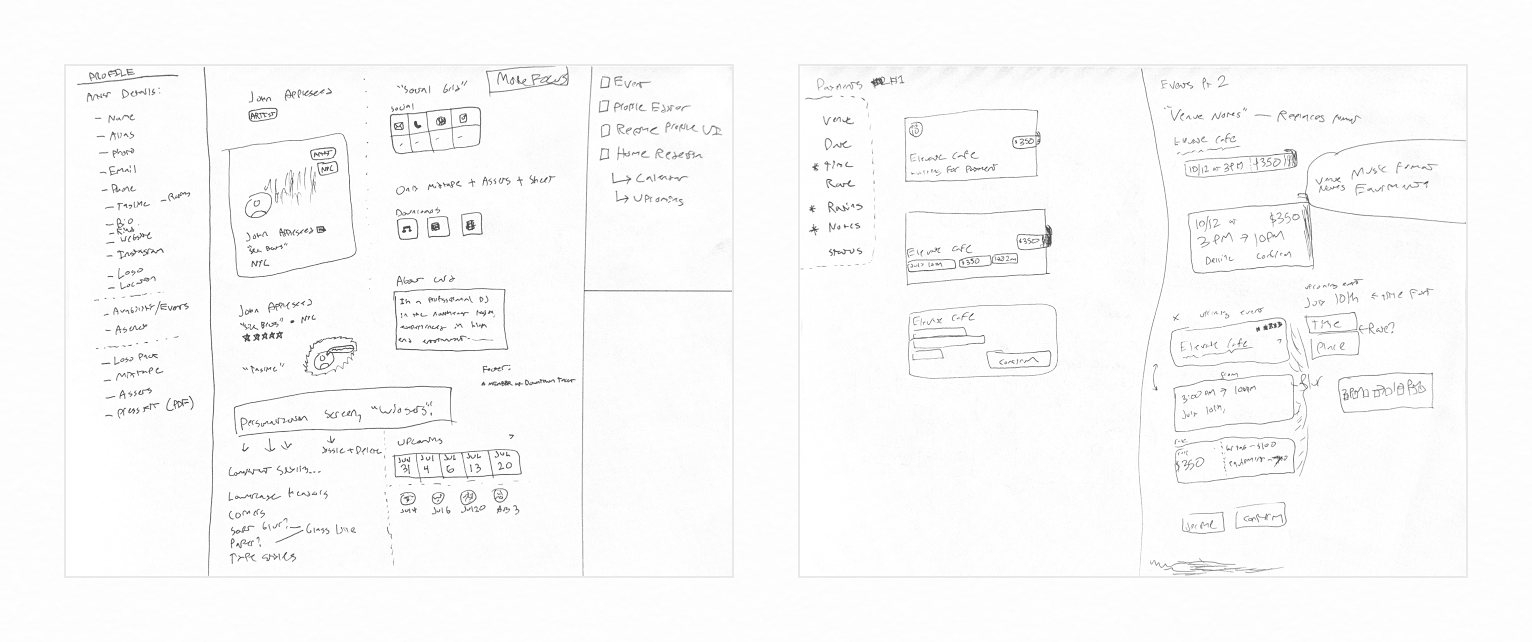 Translating these concepts into UI meant thorough sketching and wireframing.