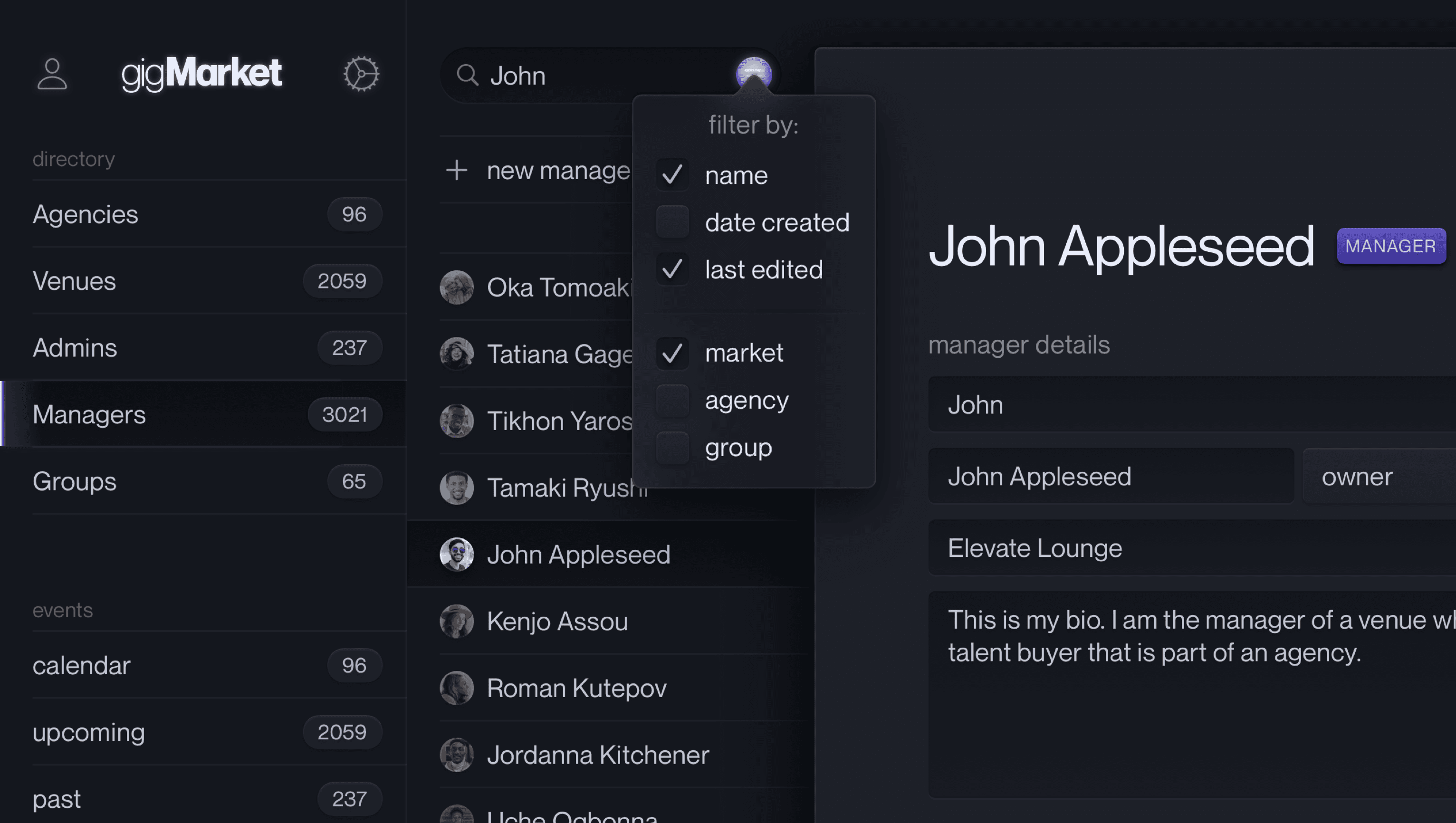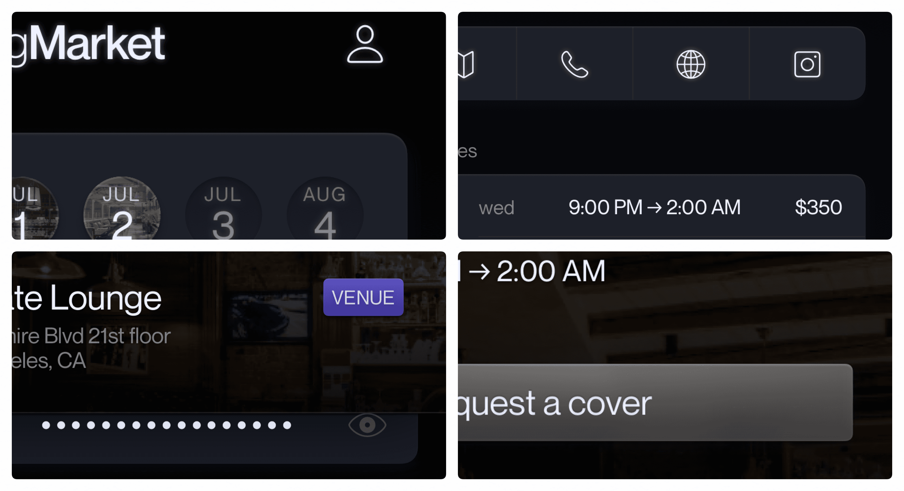 Whether for profiles, or for venues, the components I design keep everything concise and understandable at a glance—crucial when considering the frenetic environments gigMarket will be used in.