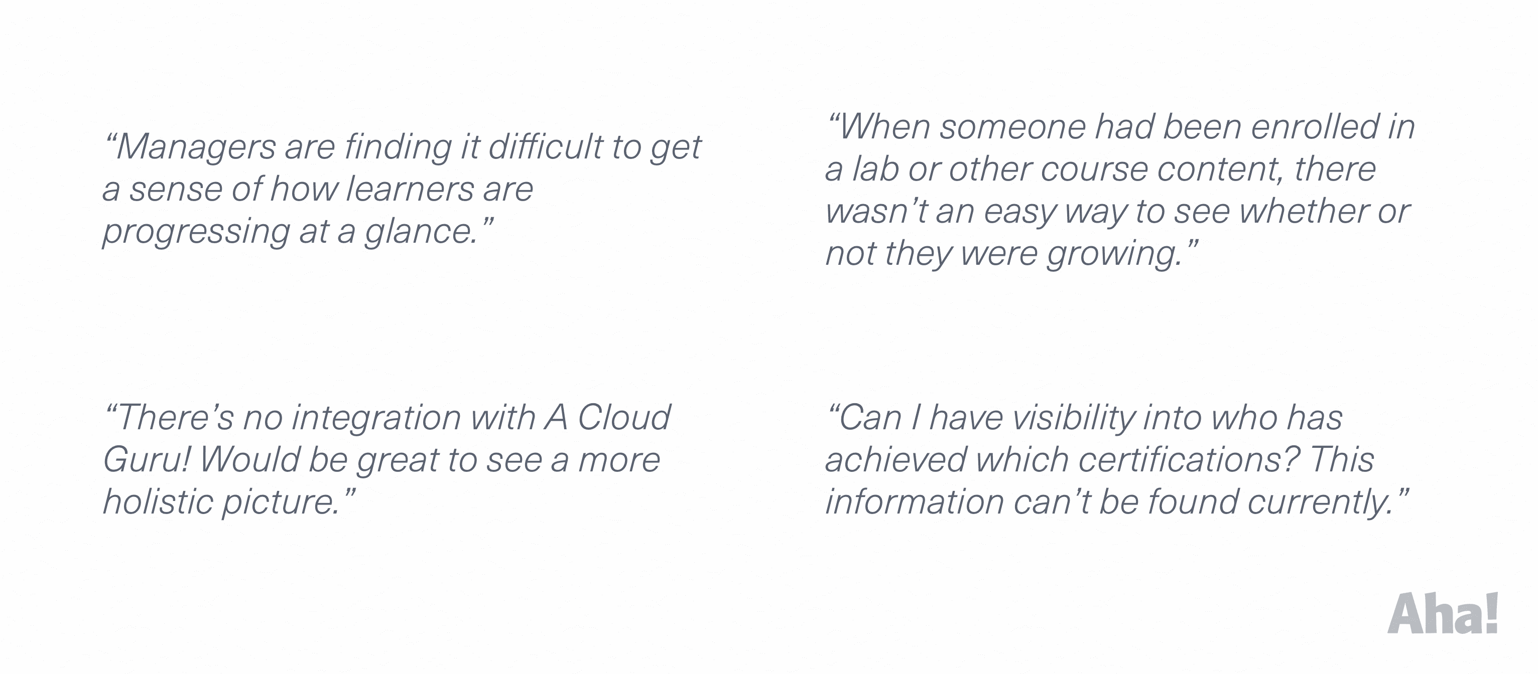 A single page provides a birds-eye view of a learner’s journey, with dynamic widgets highlighting the most important datapoints to customers.