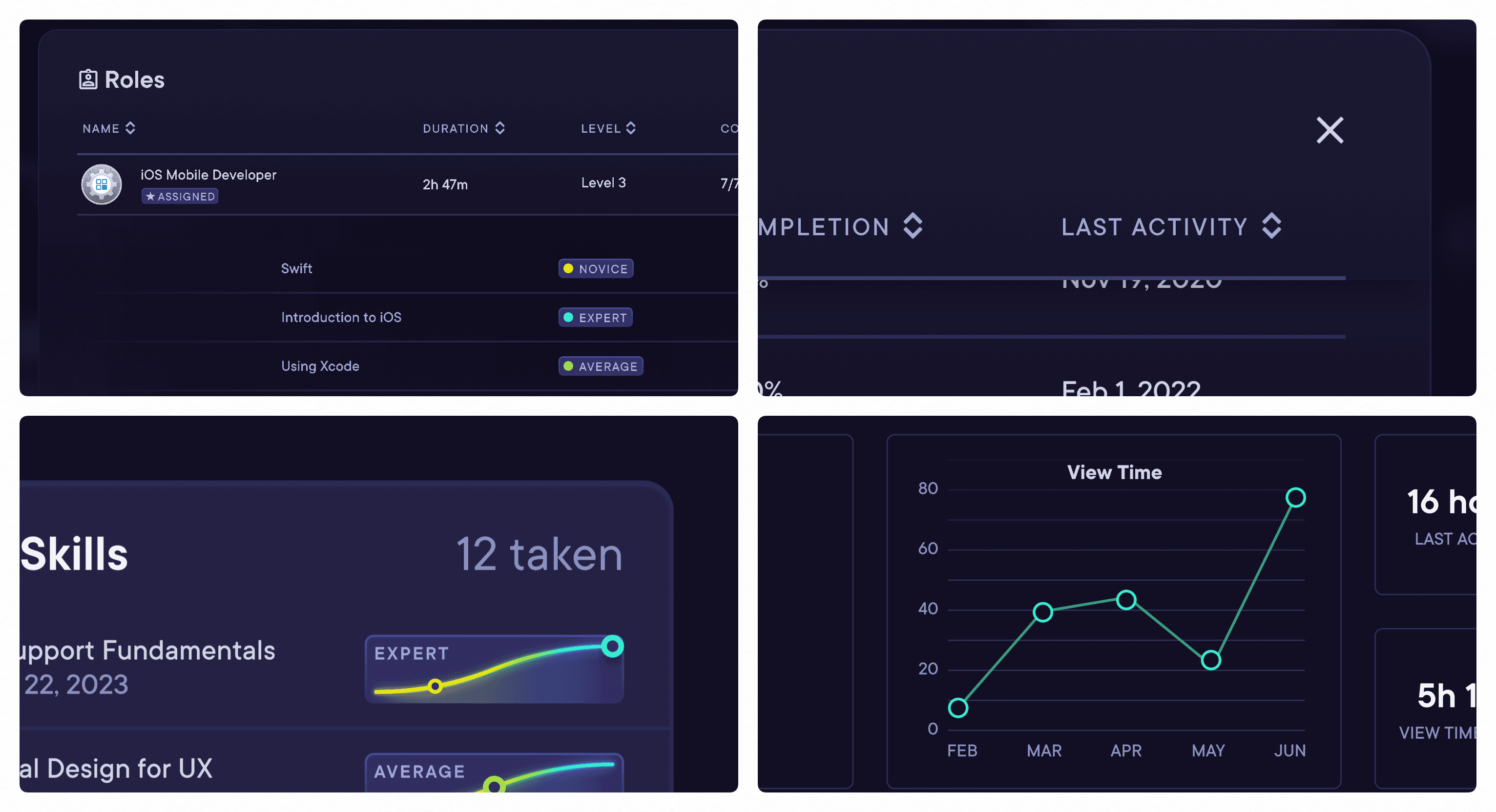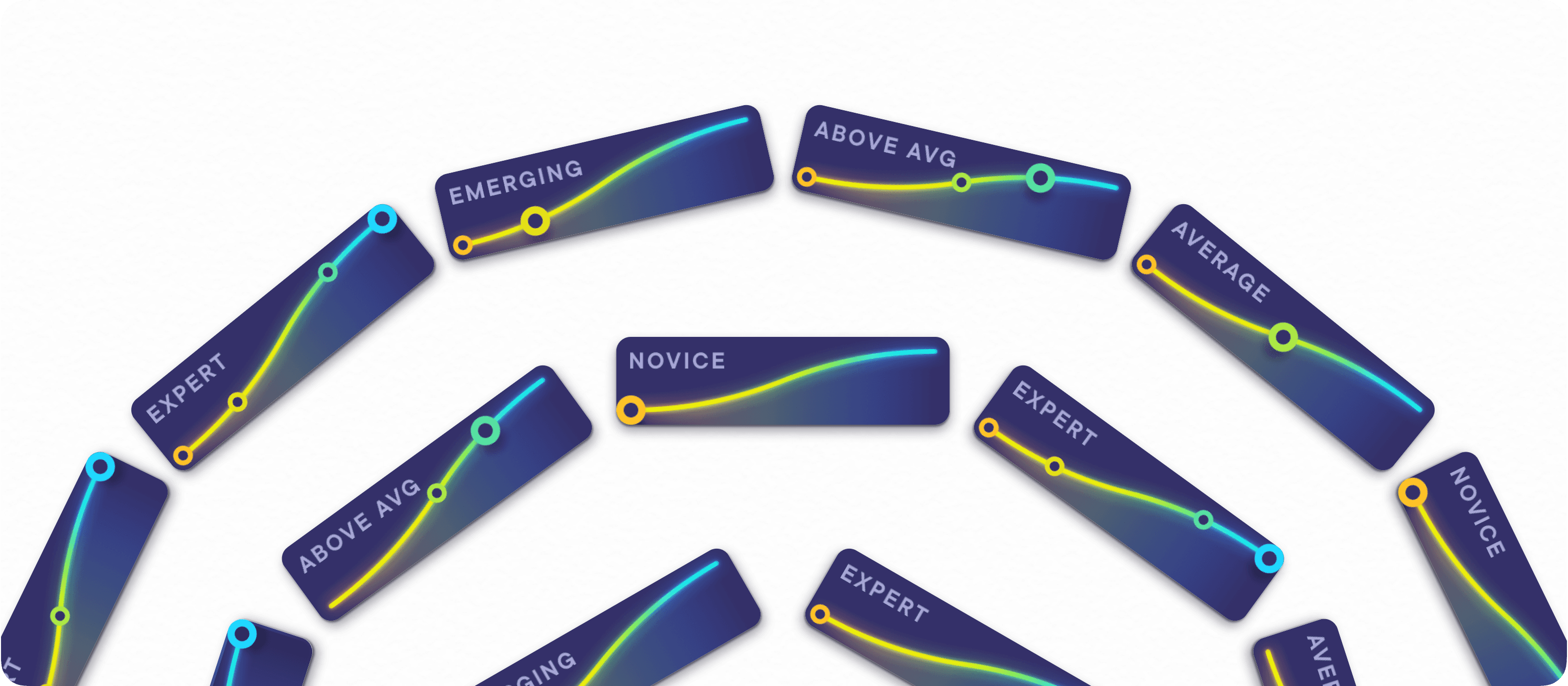 Skill IQ Badges efficiently display a multitude of user’s growth journeys.