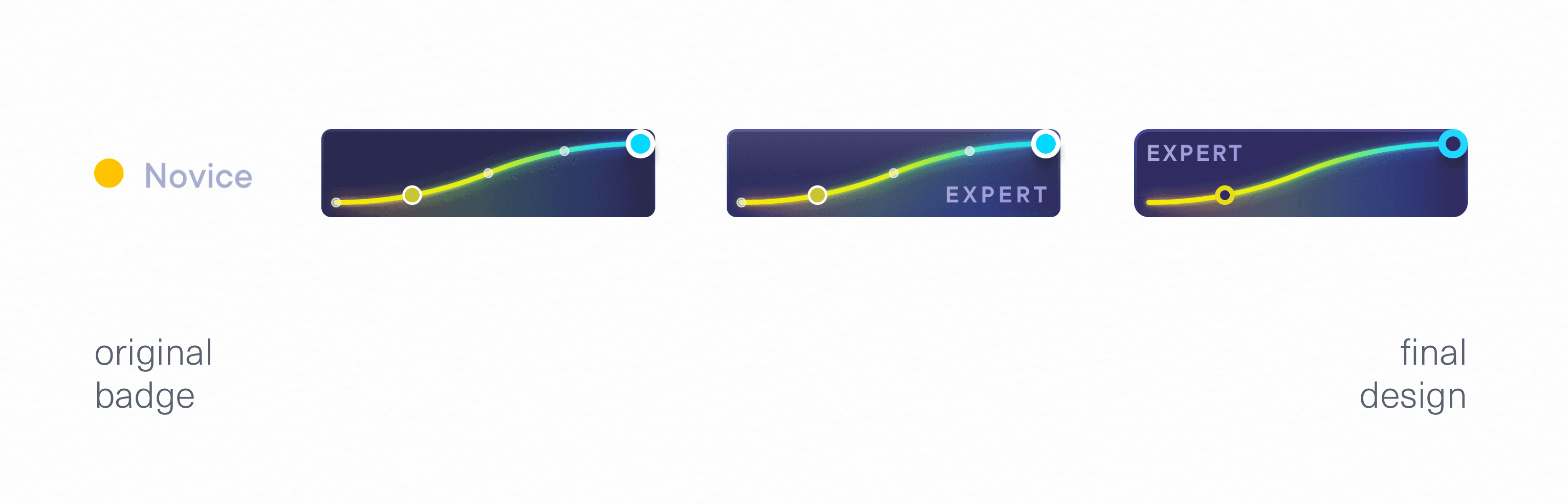 A core element of the Pluralsight experience is Skill IQ—assessments learners take to gauge their growth. Skill IQ was previously represented via status badges which displayed only the learner’s current level. These badges didn't tell the user anything about growth—how a learner had progressed, and where their current level was in relation to others. I designed a brand new Skill Badge to clearly communicate growth, not just current state.