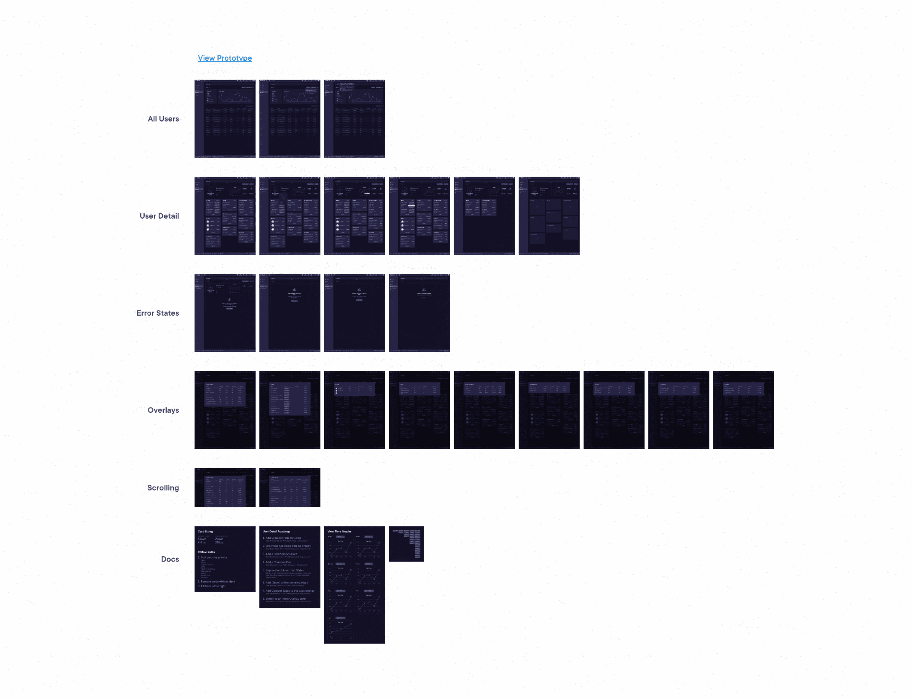 The new User Detail page reflows dynamically, depending on what Pluralsight features a learner interacts with, and how often. The comprehensive documentation I wrote and Loom videos I recorded helped our engineering team perfect these interactions. The interfaces themselves had many fine touches were delivered via pixel-perfect cleanly labeled handoff documents. I helped engineers on the team to strategize approaches for the more ambitious visual components of the project—the resulting experience is equally intuitive and visually striking.