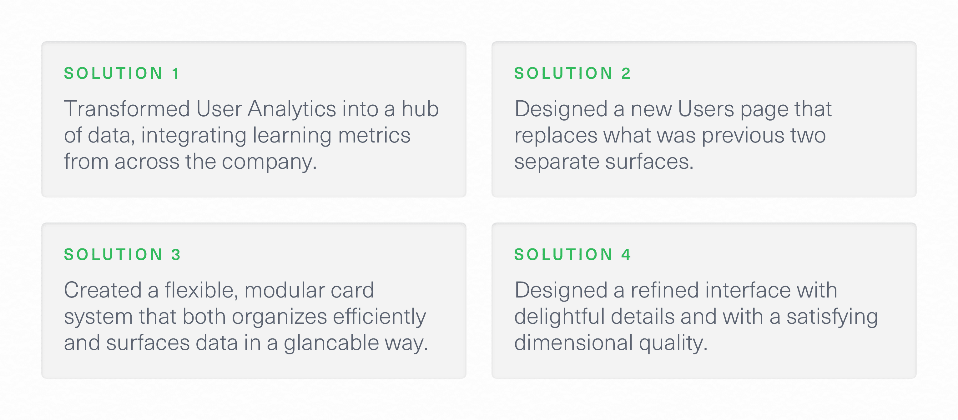 The reimagined User Analytics experience solves all of the issues we set out to solve at the beginning of the process—and introduces a new paradigm for Pluralsight: the modular grid. Now, customers are able to quickly assess the state of a learner’s growth, with just the right information, delivered in just the right way.